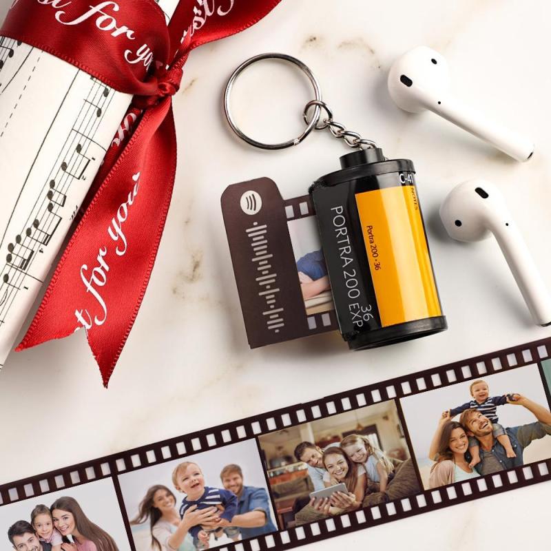 Personalized Spotify Code Camera Roll Keychain Multiphoto for Dad 5-20 Pictures