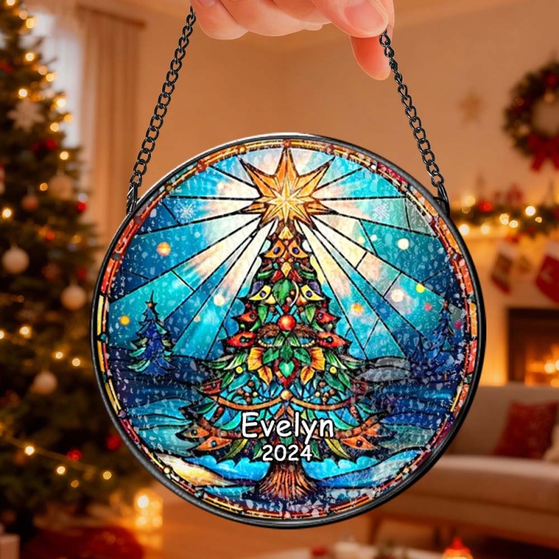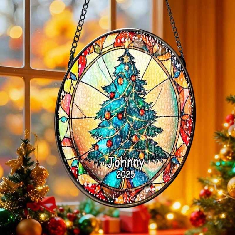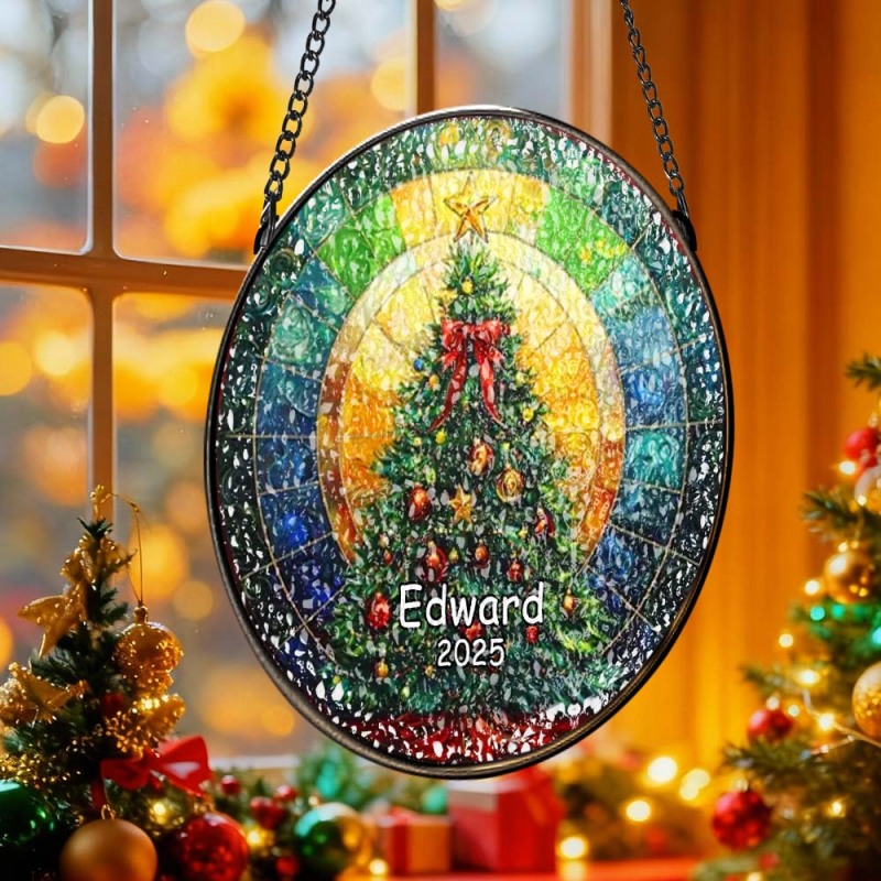 Personalized Stained Glass Christmas Tree Ornament,Christmas Handcraft Holiday Ornament with name,Premium Water Ripple Glass,Christmas GIFT