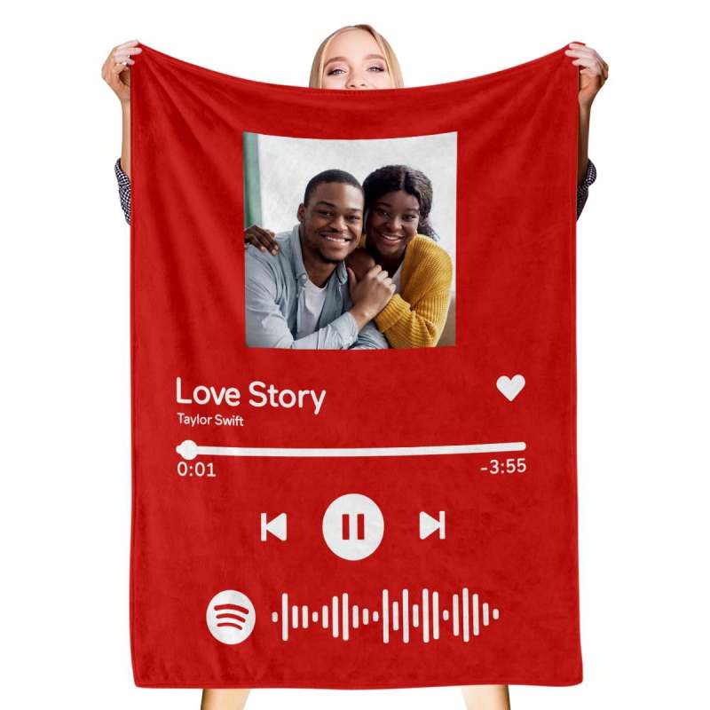 Scannable Music Code Blanket Personalized Photo Blanket Red Blanket -Gift For Her