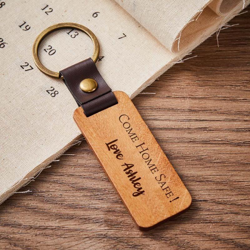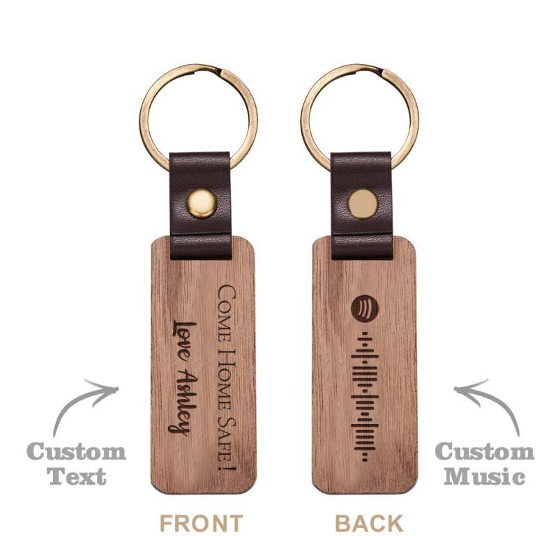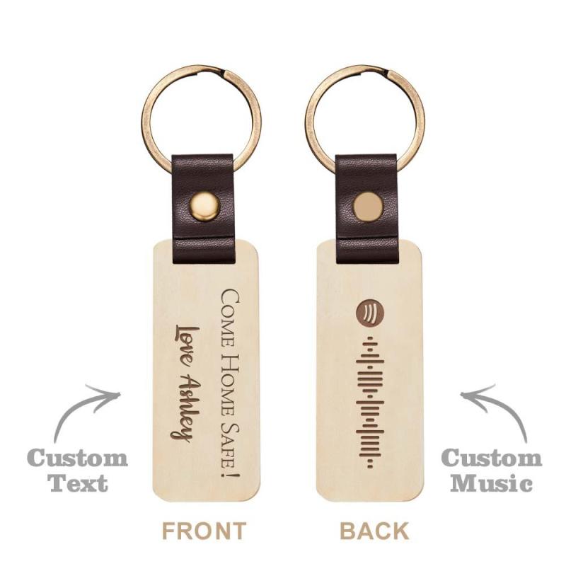 Scannable Spotify Code Wood Keychain Engraved COME HOME SAFE Keychain Father's Day Gifts
