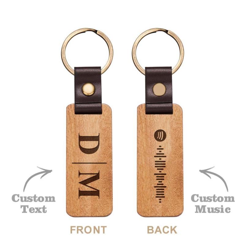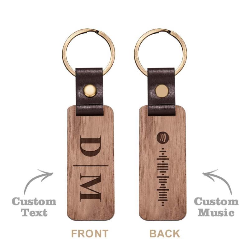 Scannable Spotify Code Wood Keychain Vintage Engraved Keychain For Him