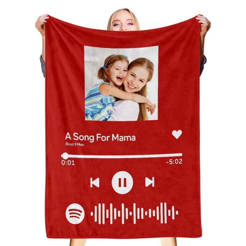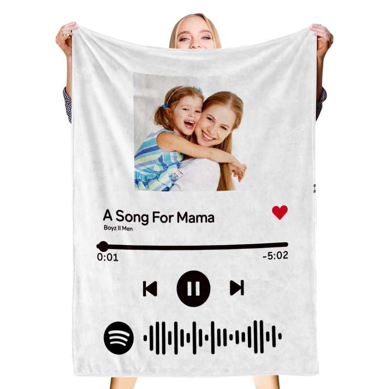 Scannable Spotify Music Code Blanket Personalized Photo Blanket Black Blanket-Gift For Mom