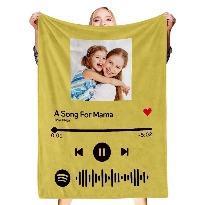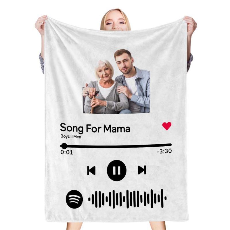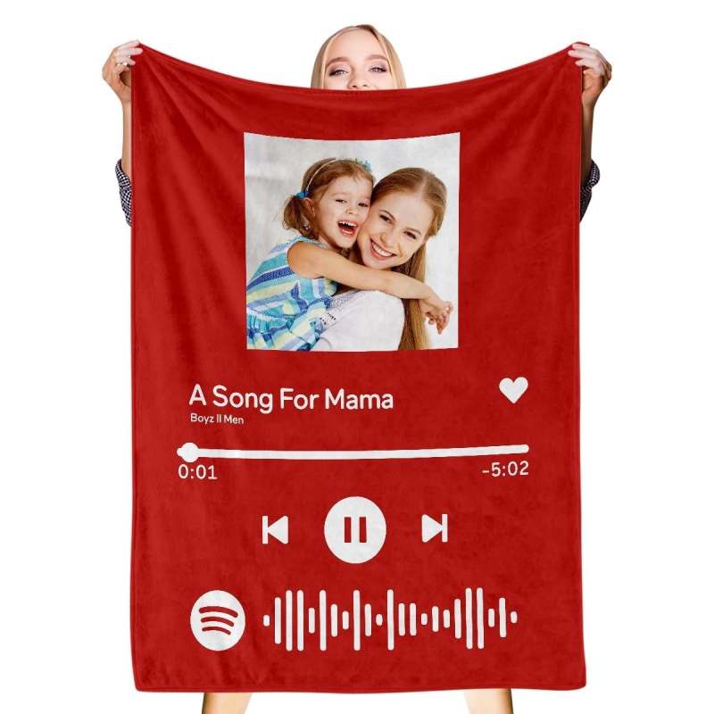 Scannable Spotify Music Code Blanket Personalized Photo Blanket Red Blanket-Gift For Mom