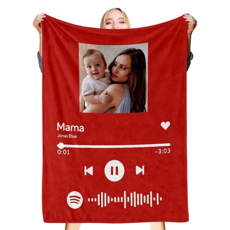 Scannable Spotify Music Code Blanket Personalized Photo Blanket Red Blanket Mother's Day Gift