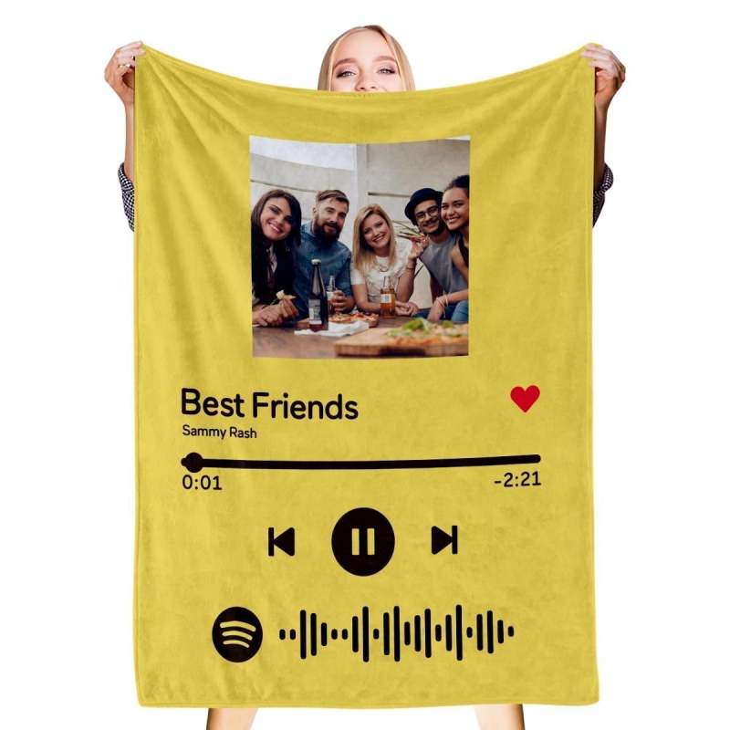 Scannable Spotify Music Code Blanket Personalized Photo Blanket Yellow Blanket For Friends
