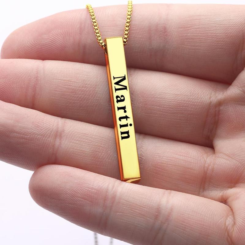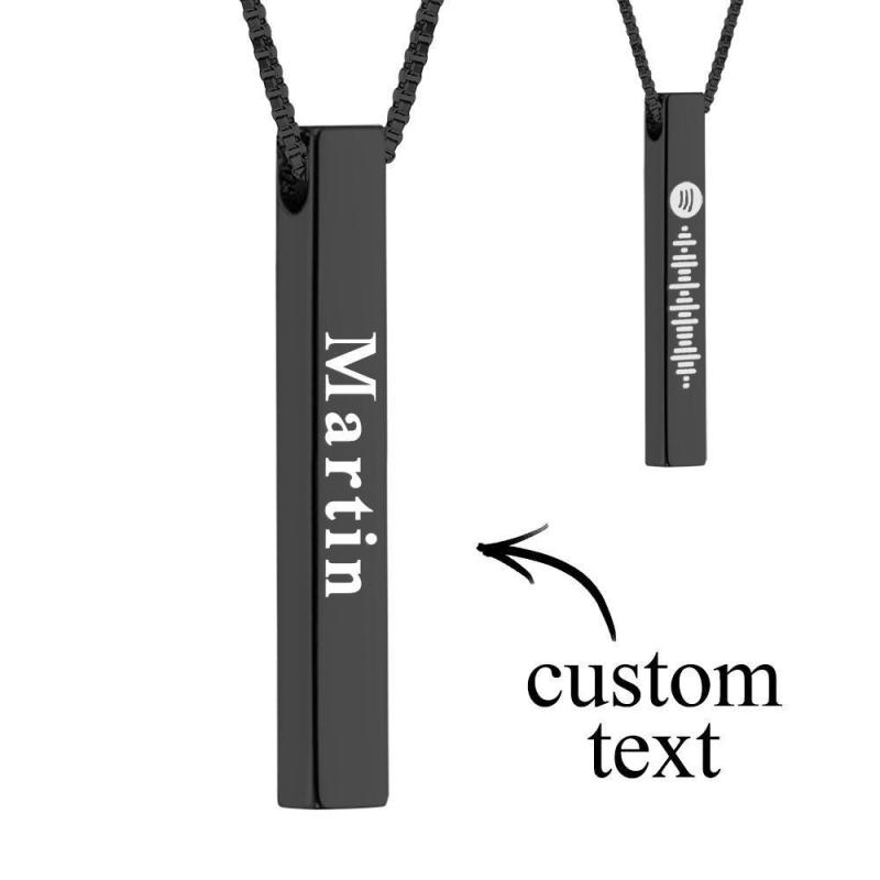 Spotify Music Necklace Custom Name 3D Engraved Vertical Bar Necklace Stainless Steel