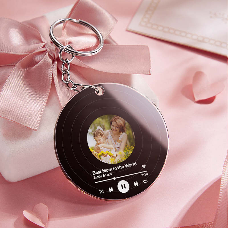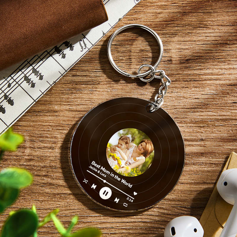 Custom Photo Engraved Keychain Mucic Keychain Vinyl Record Keyring Gift For Mom